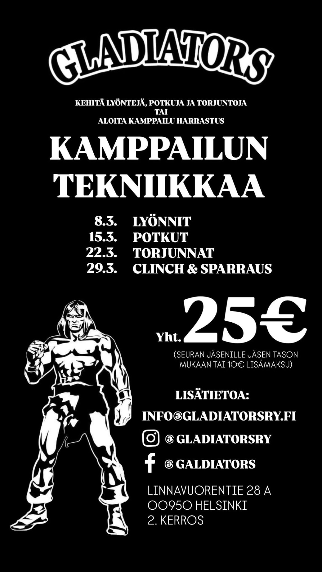 Lisätietoa ja ilmoittautumine: info@gladiatorsry.fi